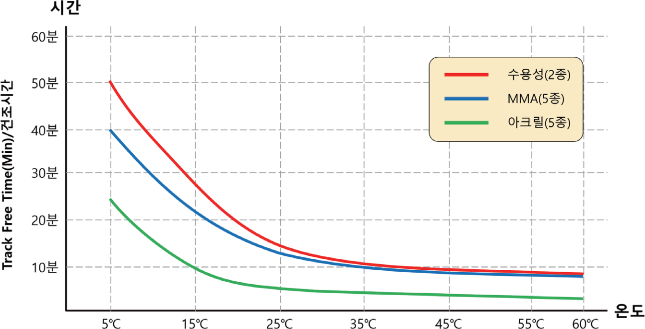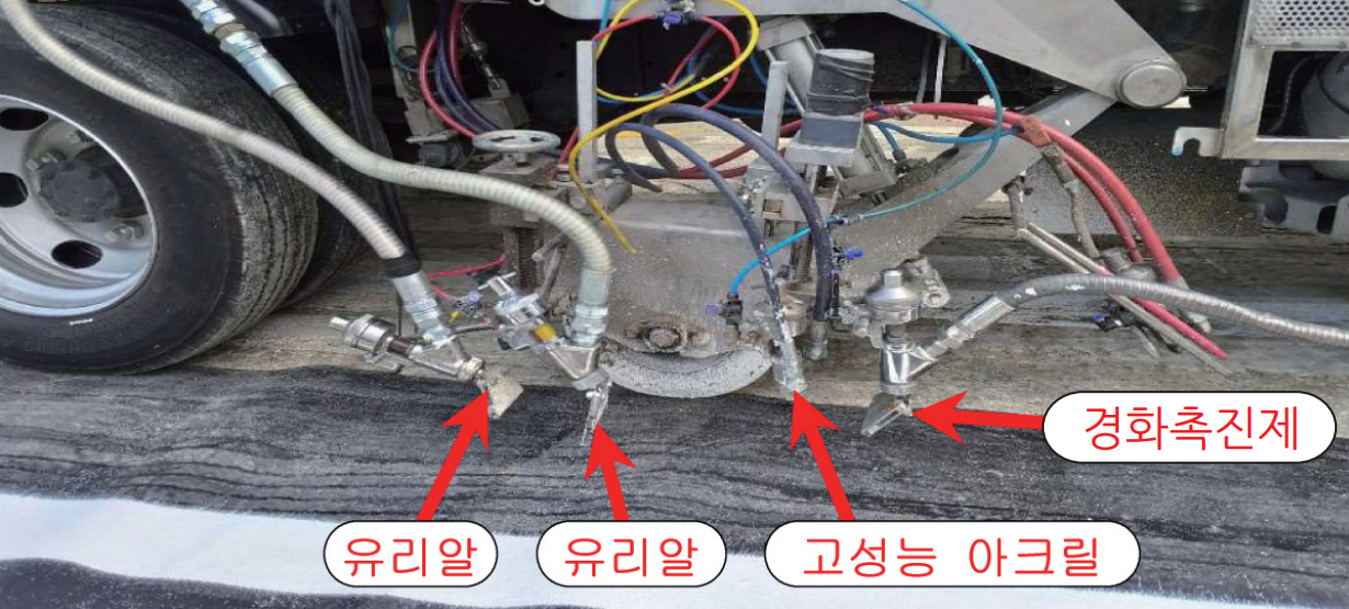실란커플링제 도입으로 모든 포장면 및 기존 차선과의 부착성 향상과 상호호환성이 우수함